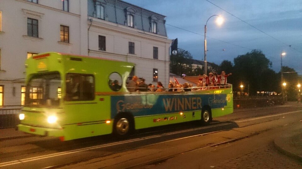 Abends besuchten wir gemeinsam die Finalspiele der G 16 und G 18 im Gamla Ullevi-Stadion. Das Finale bei den GIRLS 18 gewann dann unter tosendem Applaus unser Gruppengegner aus Norwegen. Anschließend wurde das Gewinner-Team mit einem Cabrio-Bus durch die Stadt gefahren. Ein lohnender Besuch der Finalspiele.